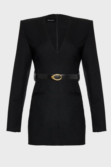 The Black Tie belt has a sleek strap with a polished gold sculptural buckle and can be worn on either side, giving you a black and white look in one. It defines the waist and completes both day and evening outfits with a modern, bold touch.