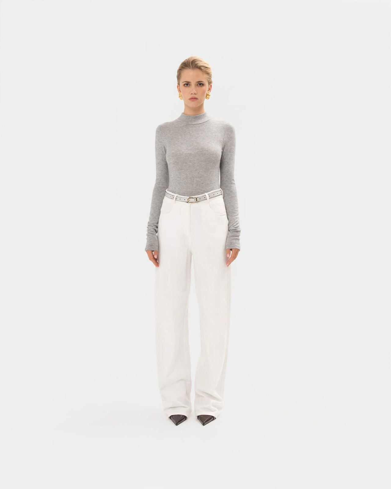 Crisp creme jeans with a straight-line cut for a clean, timeless silhouette.