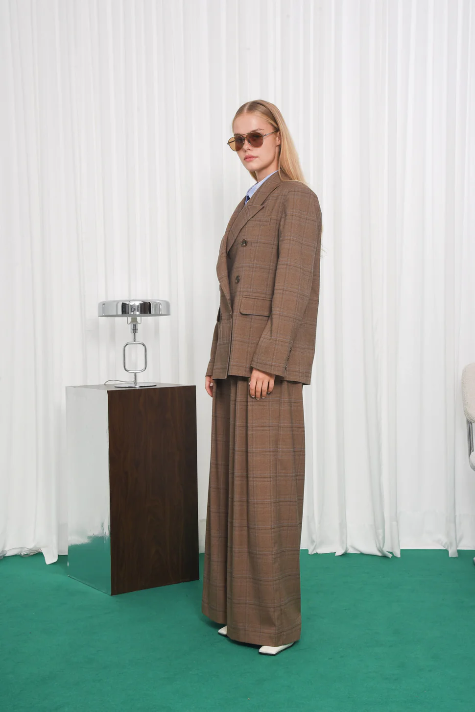 The Liberation blazer is made from a soft checked fabric blend in warm brown tones. It features a double-breasted front, wide lapels, front flap pockets, and buttoned cuffs. Fully lined and relaxed in fit, it’s an easy piece to style for both smart and casual looks.