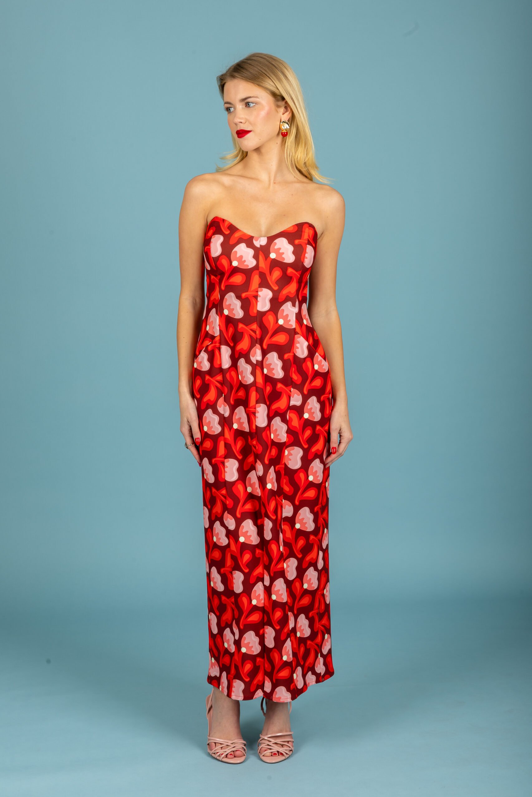 MONICA STRAPLESS DRESS RED